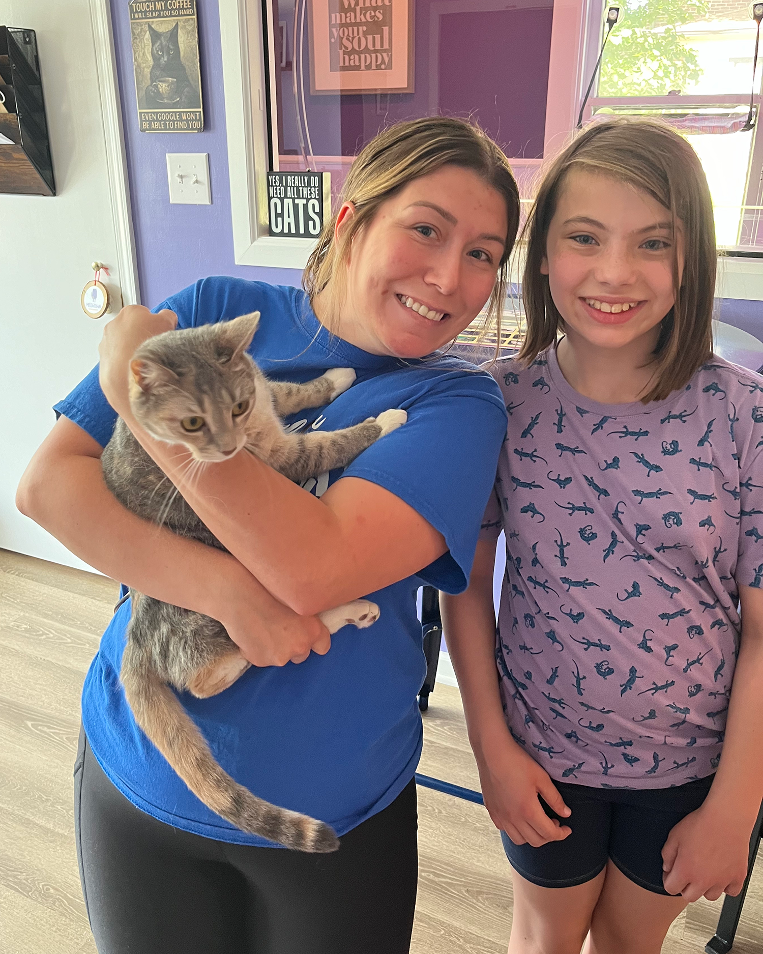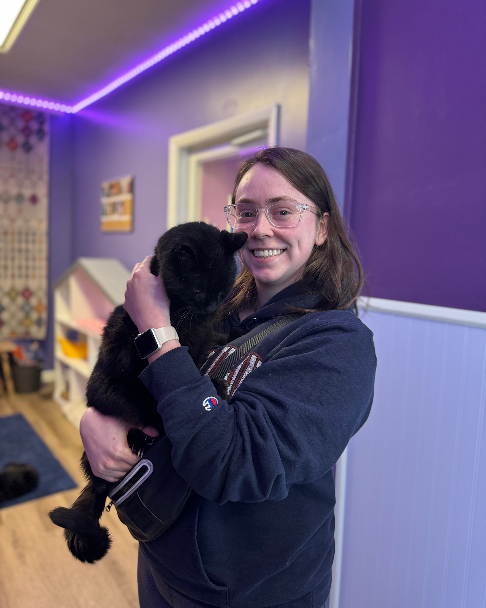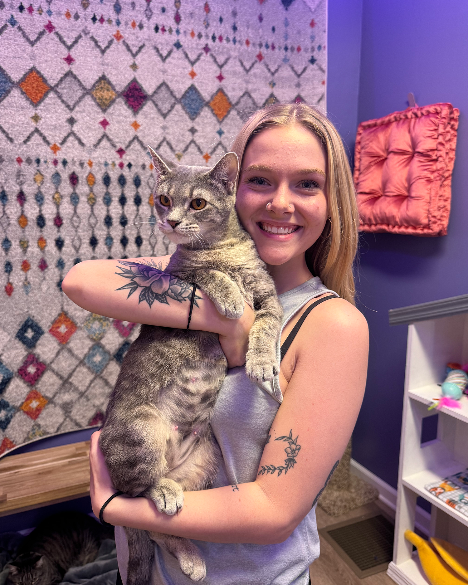 We always want to make sure that our cats go to loving homes where people are ready to take care of them! If you know that’s you, then we would love for you to come visit MeowTown and find the perfect furry friend. Our adoption process includes an application and a phone interview. Once approved and the adoption process is complete through our shelter partner, Metro East Humane Society, you can bring home your new family member.